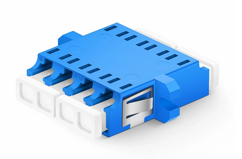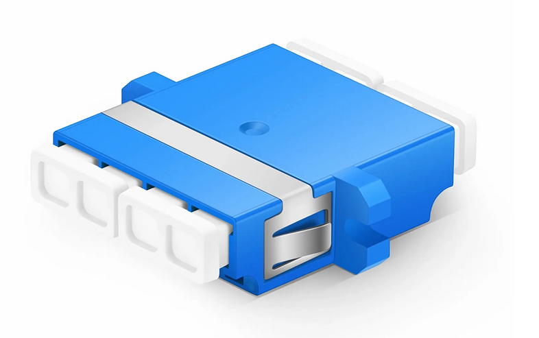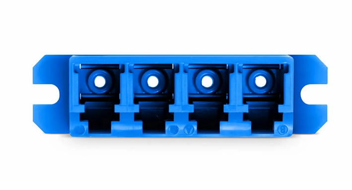 Adaptateur/Coupleur de Fibre Optique Plastique LC/UPC vers LC/UPC Quad OS2 avec Bride