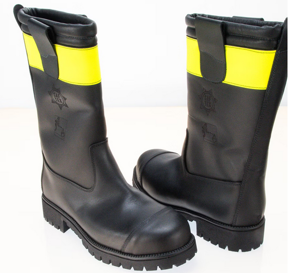 Deuxième couche de cuir sur coque de protection pour une meilleure résistance à l’usage pompier et protection civile.