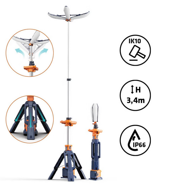 Mât d’Eclairage Portatif sur Batterie Rampe Pétale SIRIUS 3.4m
