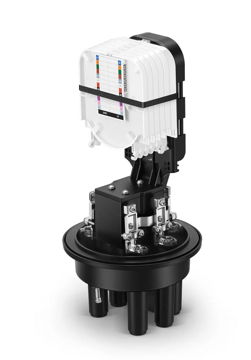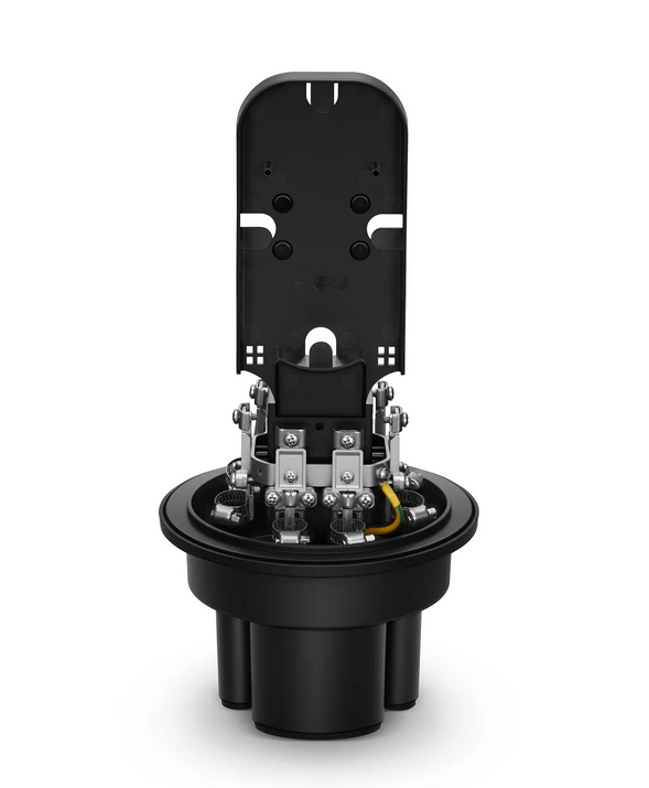 Boîtier d'épissure à dôme pour fibre optique 72 fibres 1Entrée-4Sorties, joint mécanique et joint thermorétractable, avec 1 Plateau d'Epissure préinstallé
