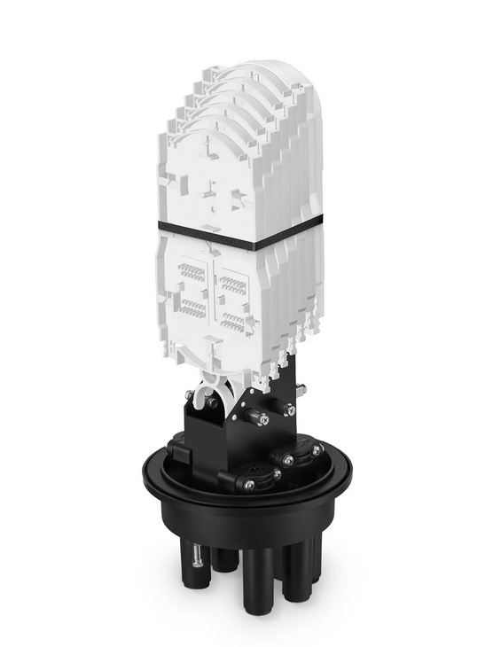 Boîtier d'Épissure à Dôme Fibre Optique 1Entrée-4Sorties 144 Fibres, Joint Thermorétractable, avec 1 Plateau d'Epissure de Fusion Préinstallé