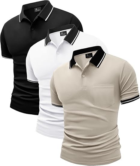 JACKETOWN Lot de 3 polos de golf à manches courtes légers et respirants pour adulte