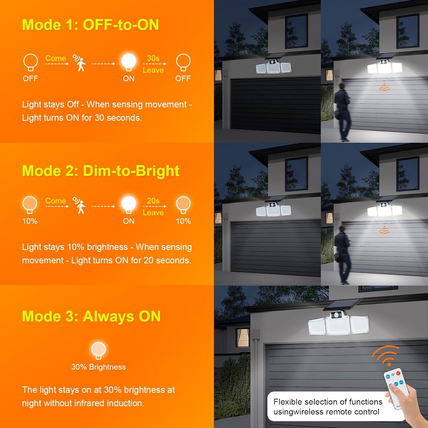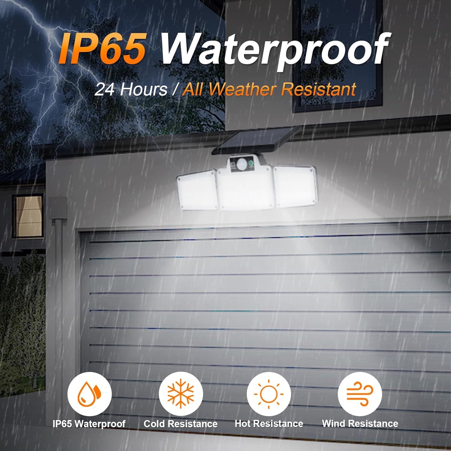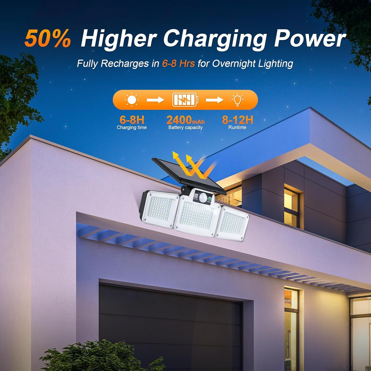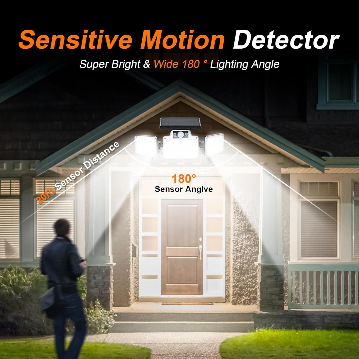 Lampes Solaires de Sécurité d'Extérieur avec Détecteur de Mouvement, 3 Têtes Réglables, Étanche IP65 pour Cour, Garage, Allée, Noir