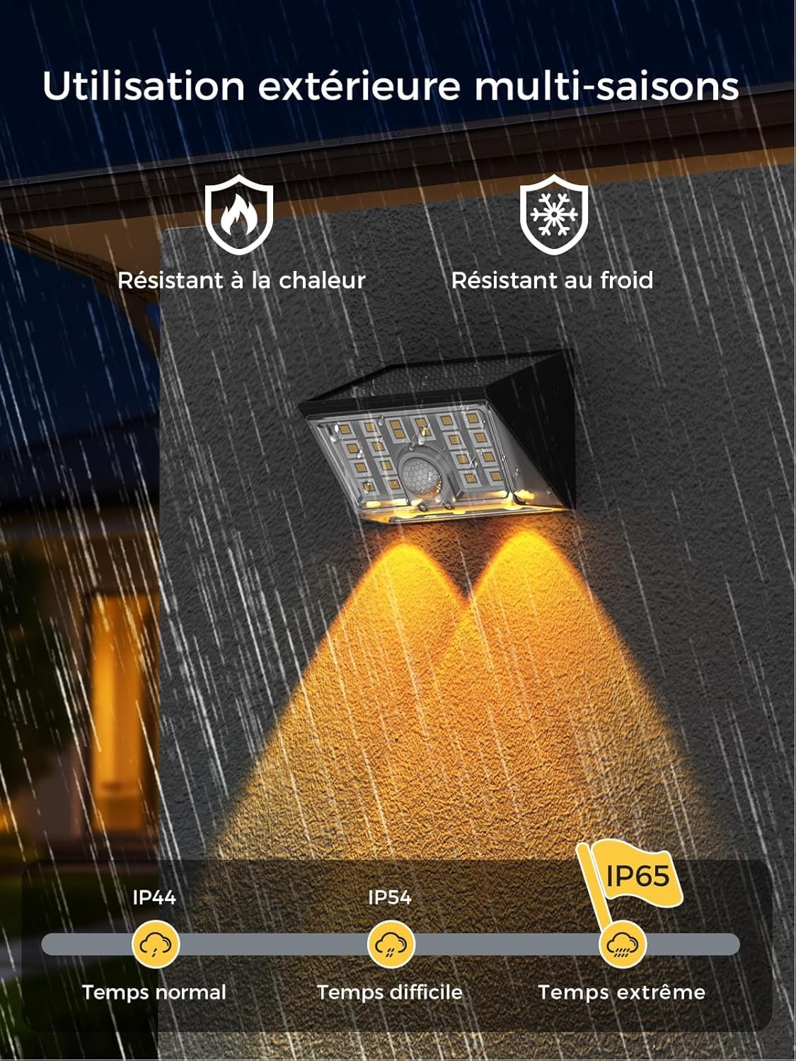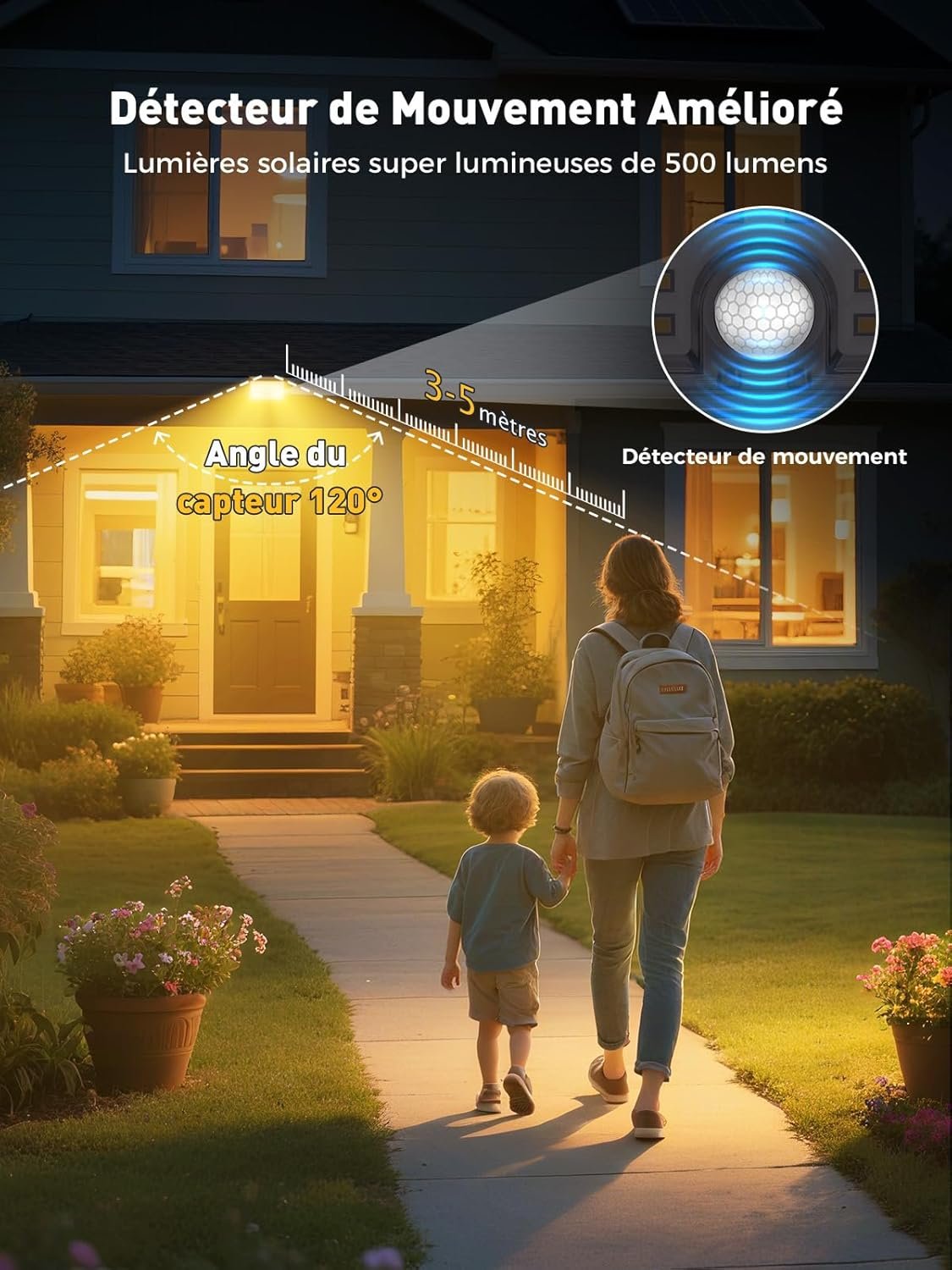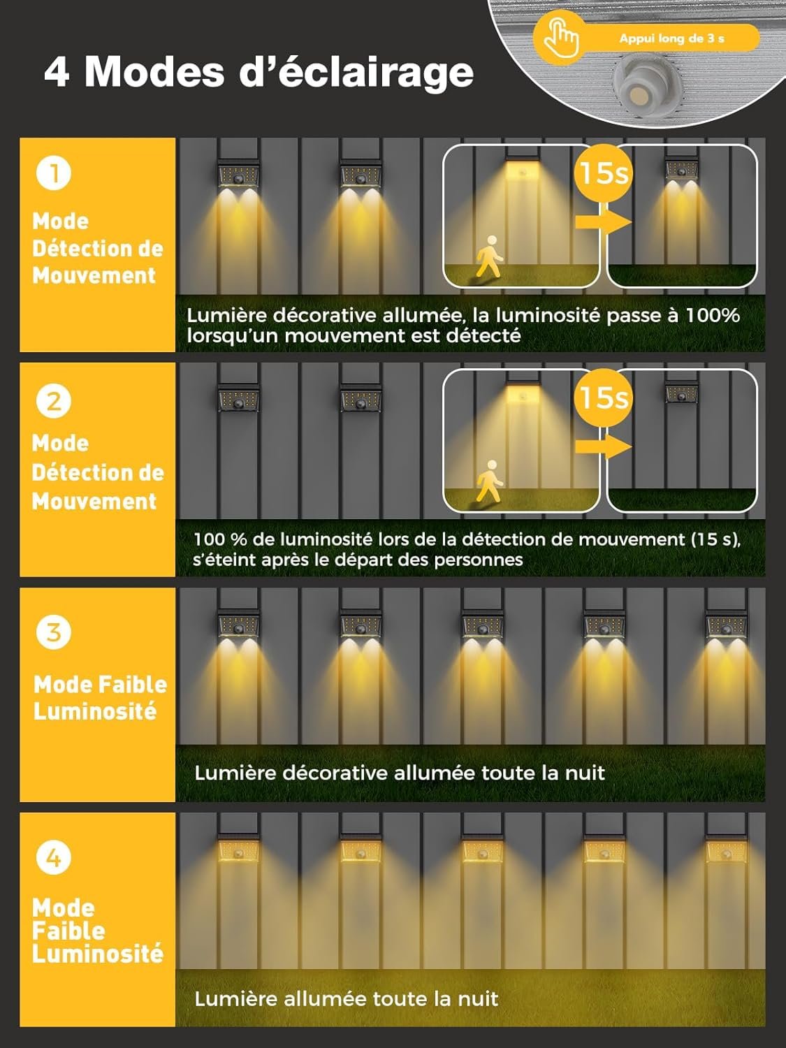 Lampe Solaire Extérieur, Lot de 4 Applique Solaire Exterieur avec Détecteur de Mouvement 4 Modes & Éclairage à 120° IP65 Étanche Spot Solaire Pour Jardin Clôture, Blanc Chaud