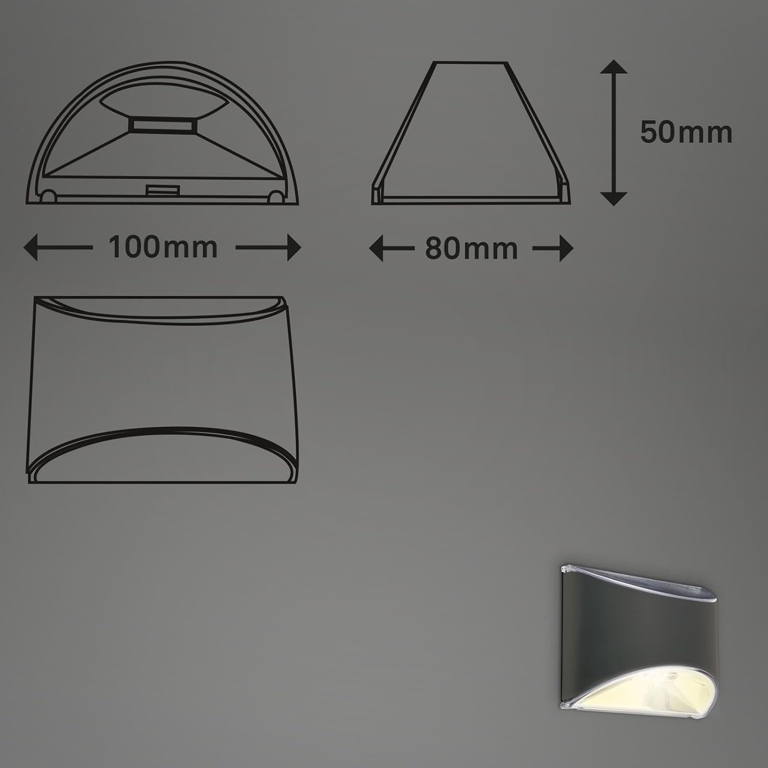 BRILONER - Lampes solaires pour l'extérieur Suspendues, Applique murale LED pour l'extérieur, Applique murale pour l'intérieur, Projecteur LED pour l'extérieur, Anthracite