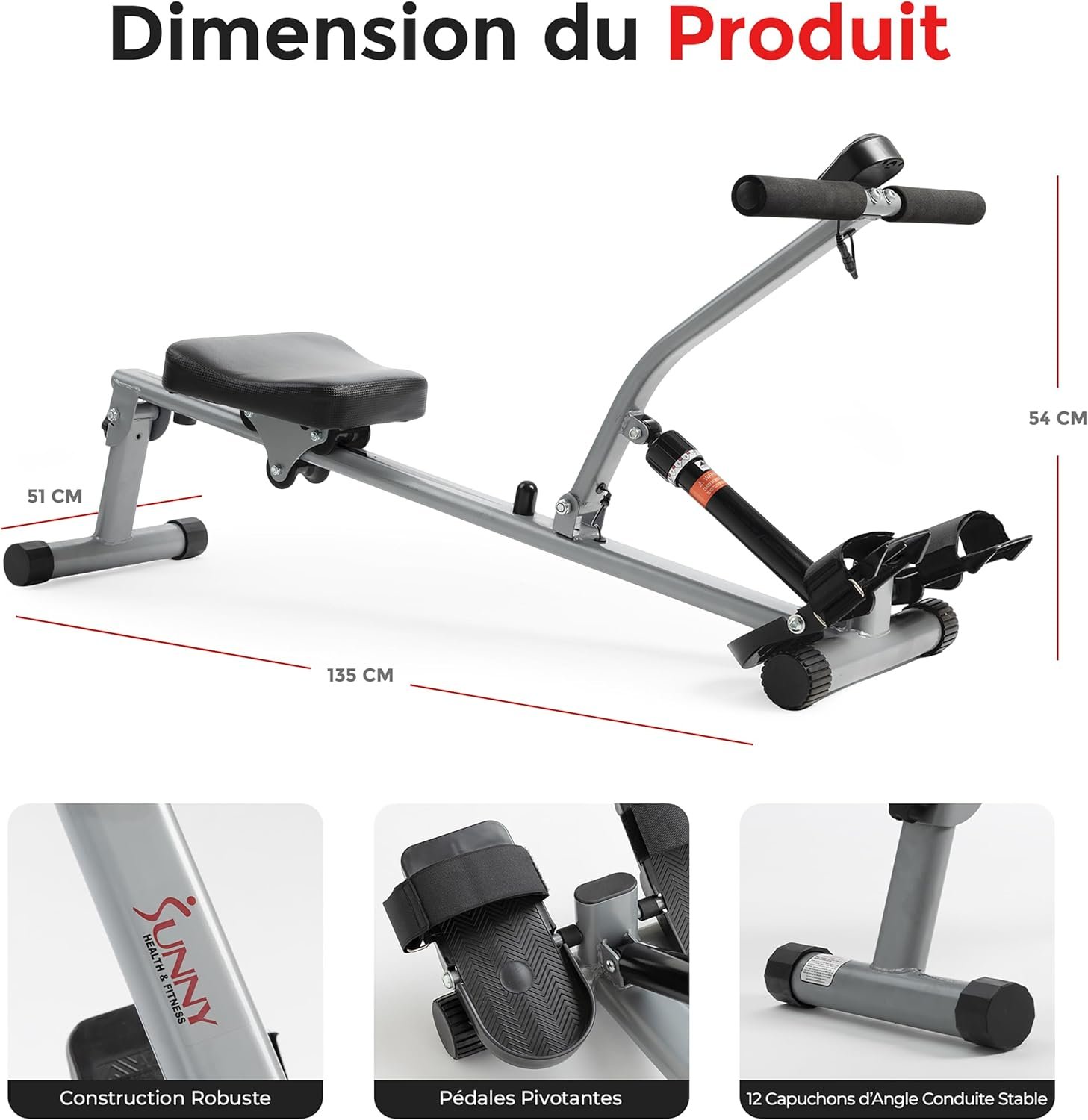 Sunny Health & Fitness Rameur de Fitness Compact avec 12 Niveaux de Résistance, Appareil Réglable pour Entraînement Complet du Corps à la Maison, avec Optionnelle Connexion SunnyFit APP