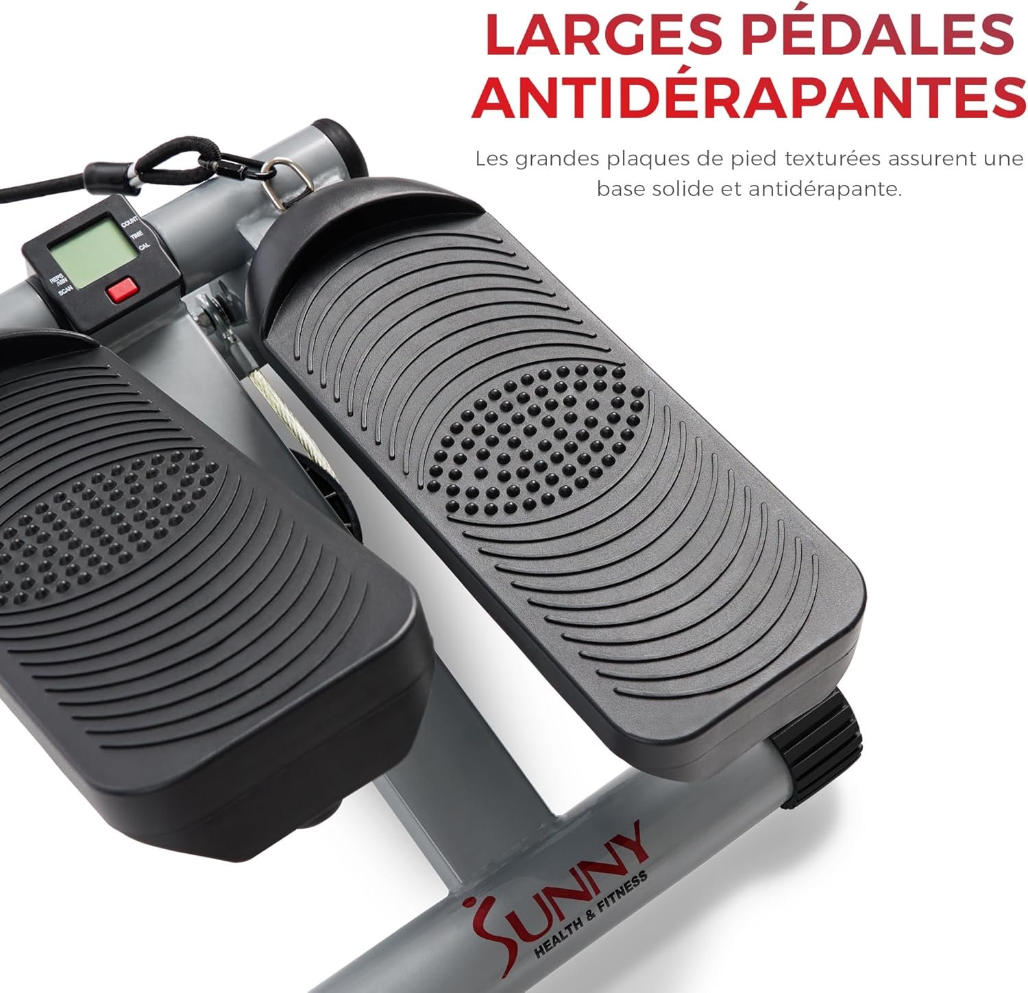 Sunny Health & Fitness Mini Stepper de Fitness pour la Maison, Machine de Step, Appareil de Fitness avec Mouvement de Rotation Optionnel, Bandes de Résistance et Connexion SunnyFit APP Gratuite