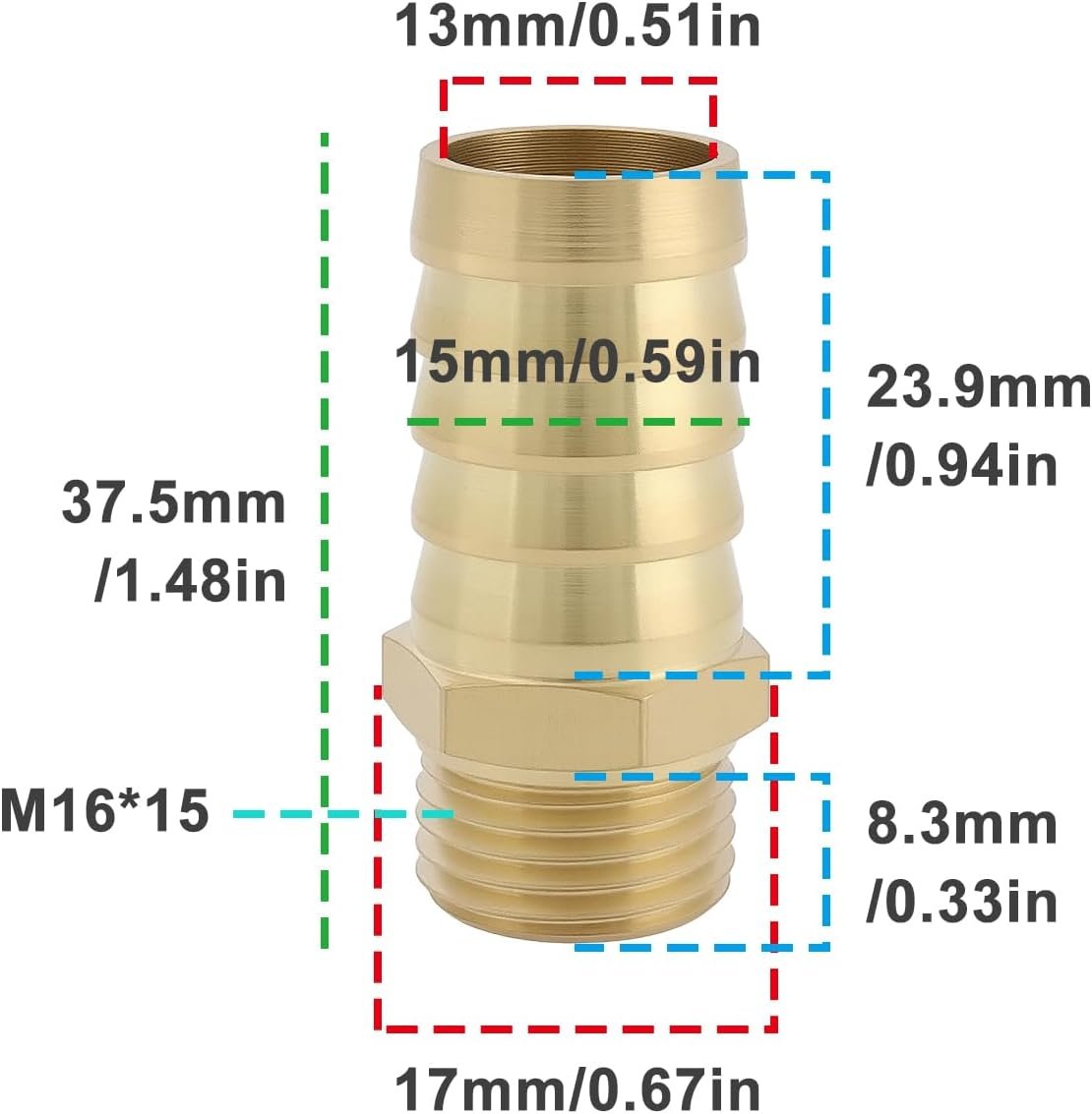 Lot de 2 raccords en laiton M16x1.5 vers embout cannelé 16 mm (5/8") – Adaptateurs robustes pour plomberie, mécanique et fluides