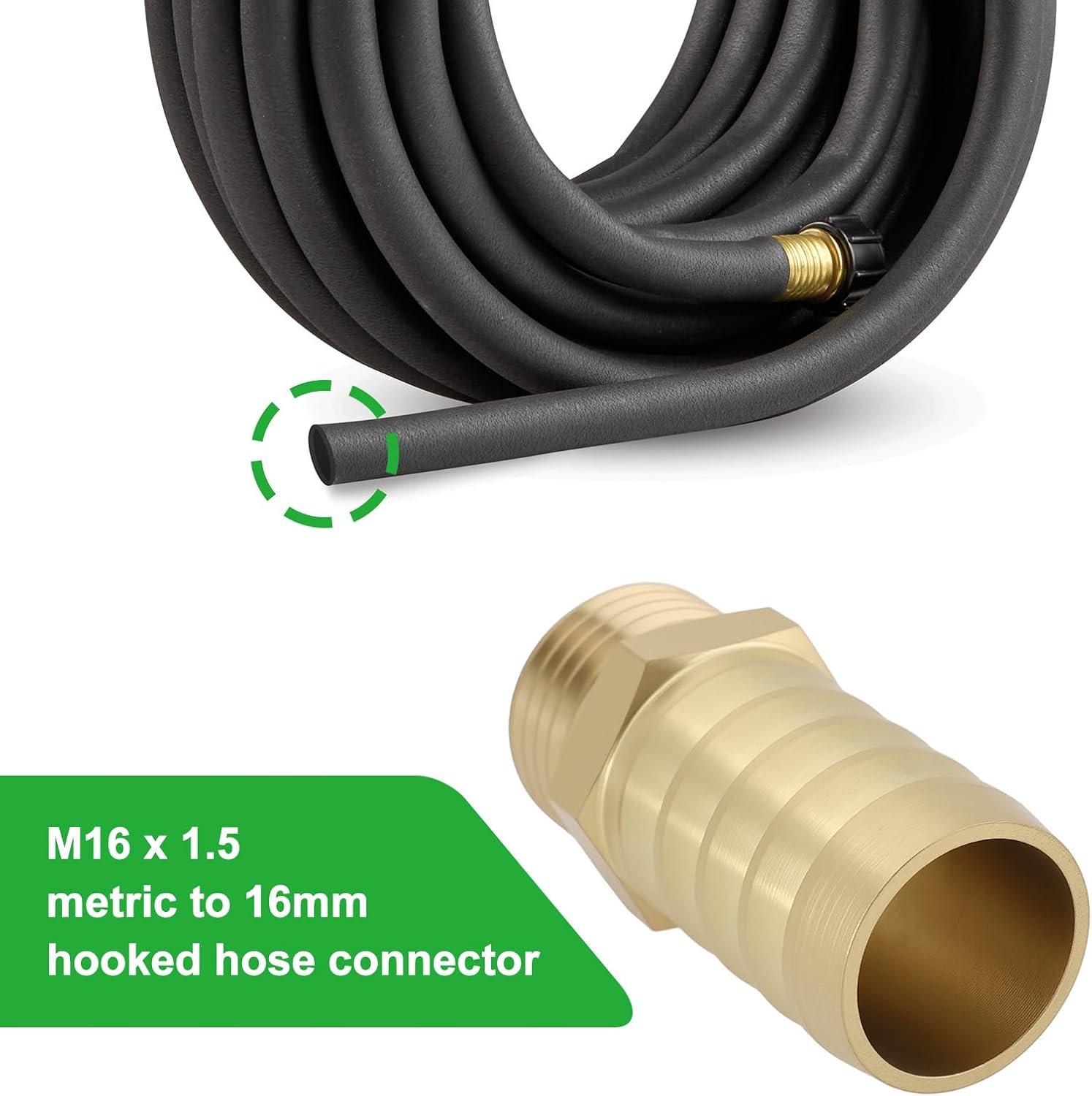 Lot de 2 raccords en laiton : adaptateurs M16 x 1,5 métrique vers embout cannelé 16 mm (5/8") pour tuyaux souples.