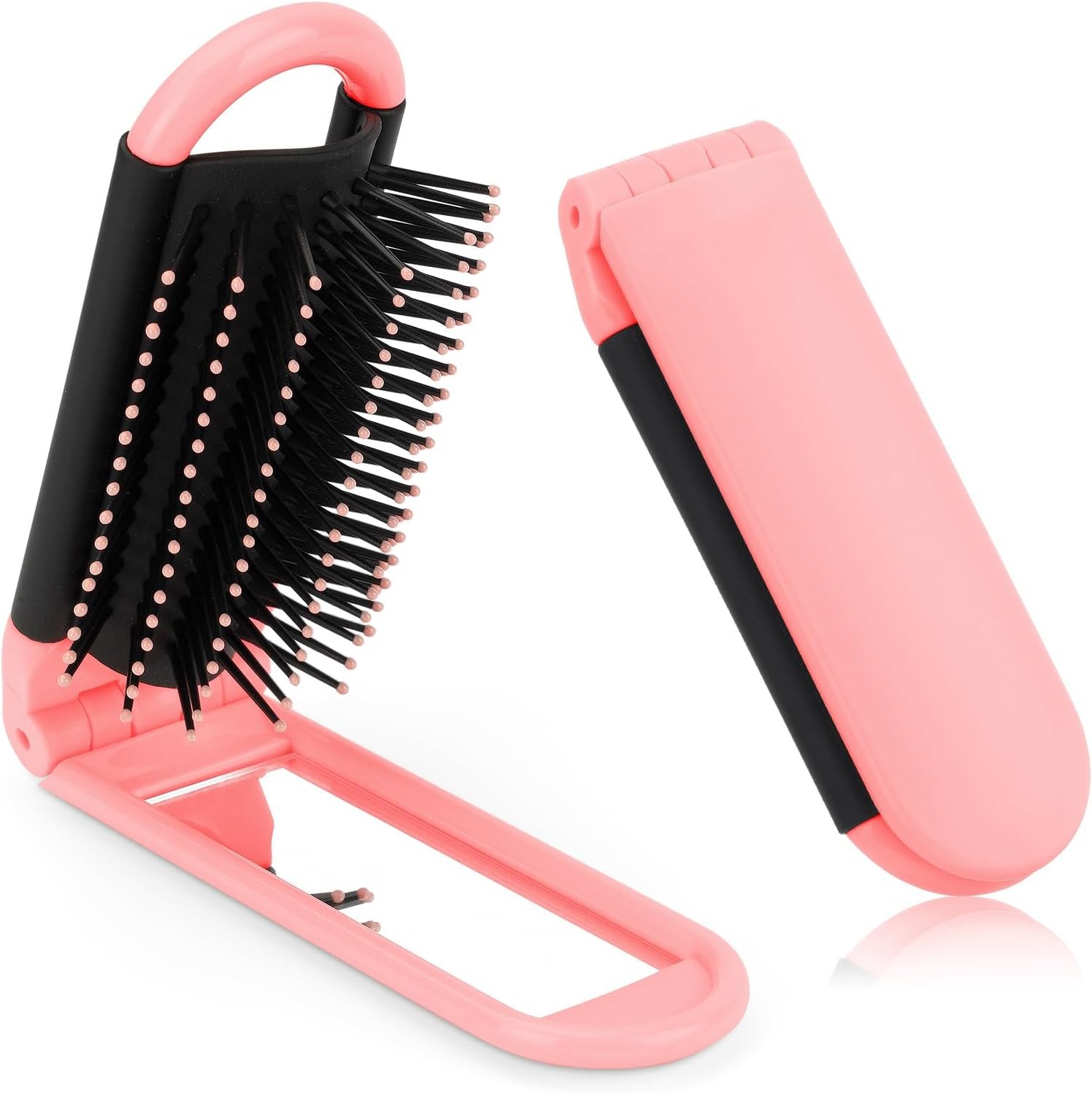 Brosse à Cheveux de Voyage avec Miroir Pliable, 1PcsTaille de Poche - Mini Brosse de Voyage pour Voyage Rencontres Salle De Sport Facile À Transporter Dans Un Sac pour Femme