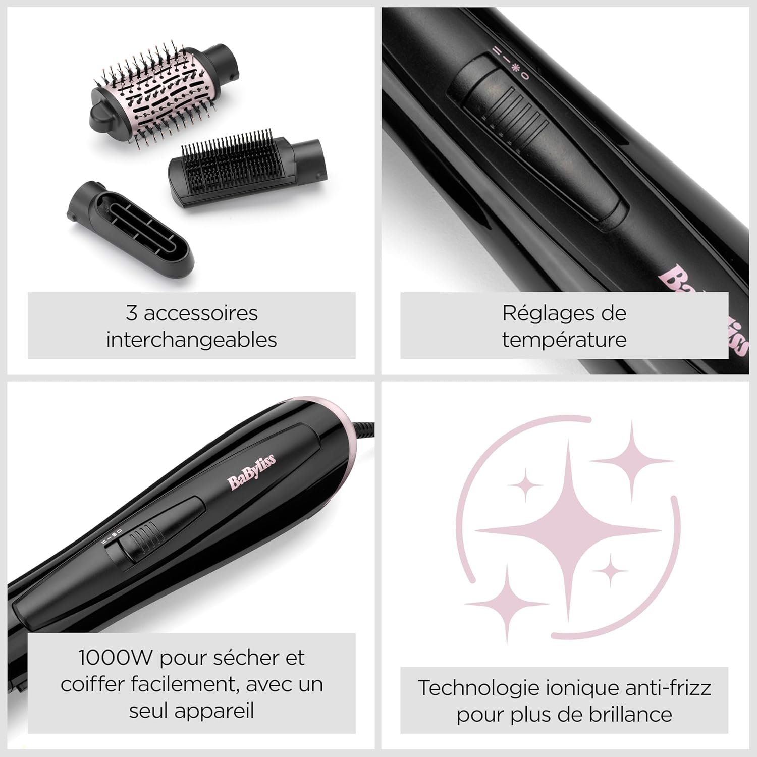 BaByliss - AS128E - Brosse soufflante multi-styles Style Smooth 1000 idéale pour sécher, apporter du volume, lisser et mettre en forme, avec un seul appareil, fonction ionique anti-frizz