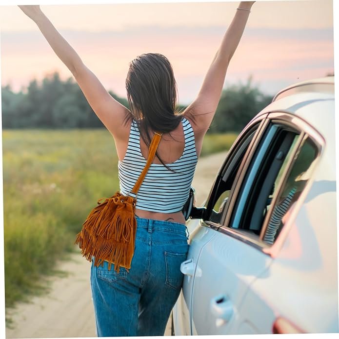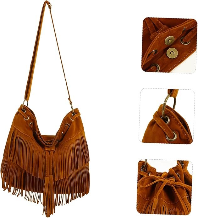 Sac à Main Femme Bandoulière Avec Franges Sac Porté Épaule Rétro Multifonction Pour Dames Marron