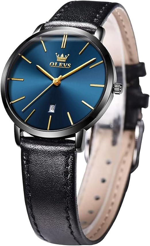 OLEVS Montres pour femmes pour femme Montre-bracelet Femme Bracelet en cuir imperméable Minimaliste Casual Robe Simple Quartz Analogique avec Date Calendrier