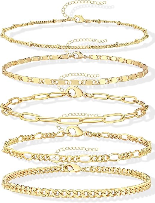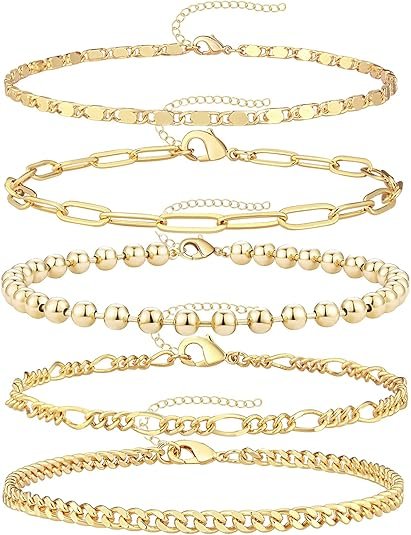 5 bracelets en couches séparées: Ce bracelet empilable pour femme se compose d'un bracelet de chaîne de 5 styles. Y compris la chaîne satellite/chaîne de maillon de paperclip/chaîne miroir/chaîne de figaro/chaîne de cuban. Vous pouvez les porter tous ou les séparer. Vous avez le choix de la façon dont vous les portez pour votre quotidien.