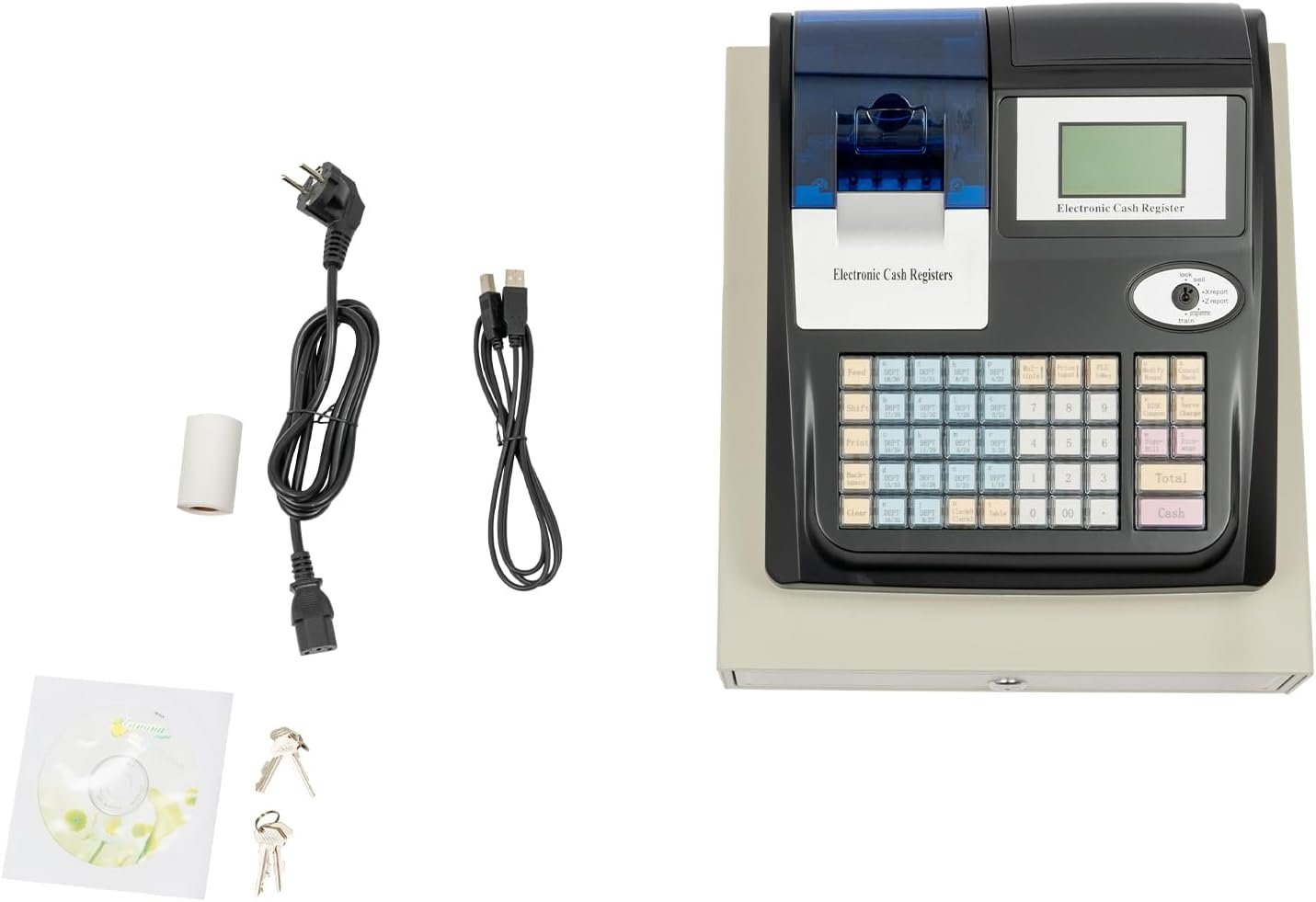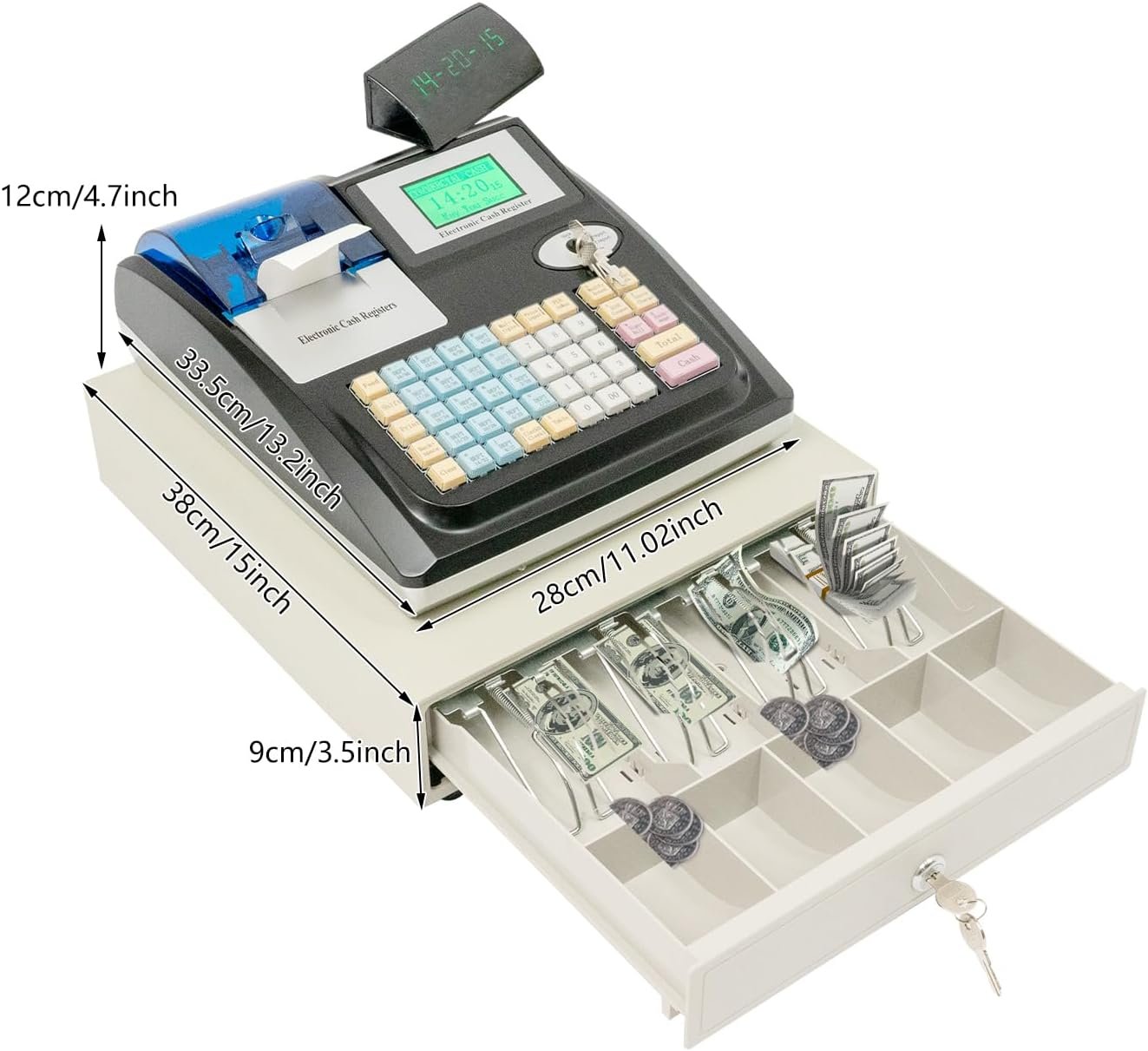 Caisse enregistreuse électronique 48 Touches 35W, Caisse Enregistreuse de Magasin Double LED écran, 36 Compartiments, Détection de Faux Billets