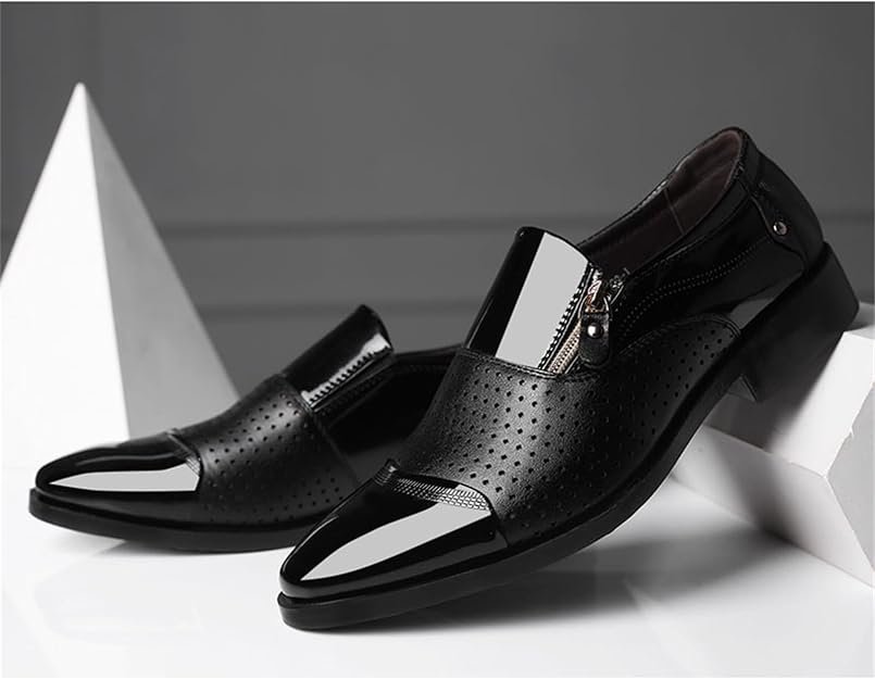 Mocassins d'été respirants à fermeture éclair pour homme - En cuir verni