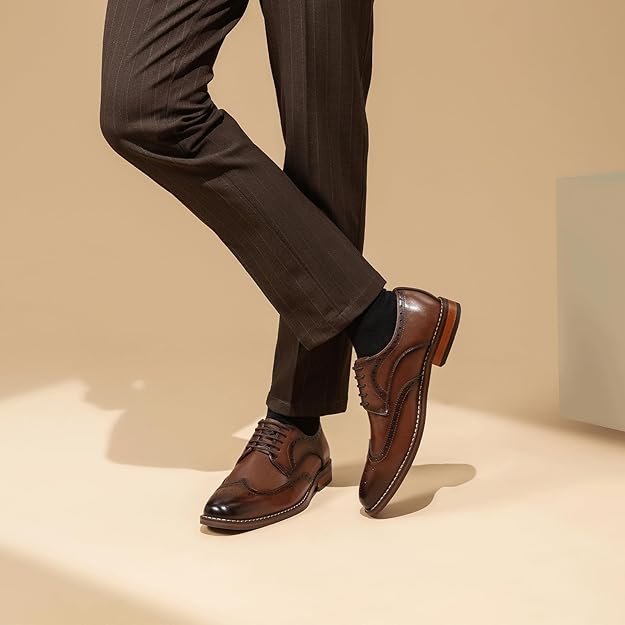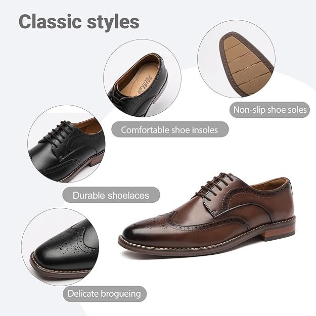 Chaussures habillées Oxford et Derby pour homme oerkan : modèles classiques en cuir à lacets, disponibles en noir et marron, avec détails brogue en cuir verni.