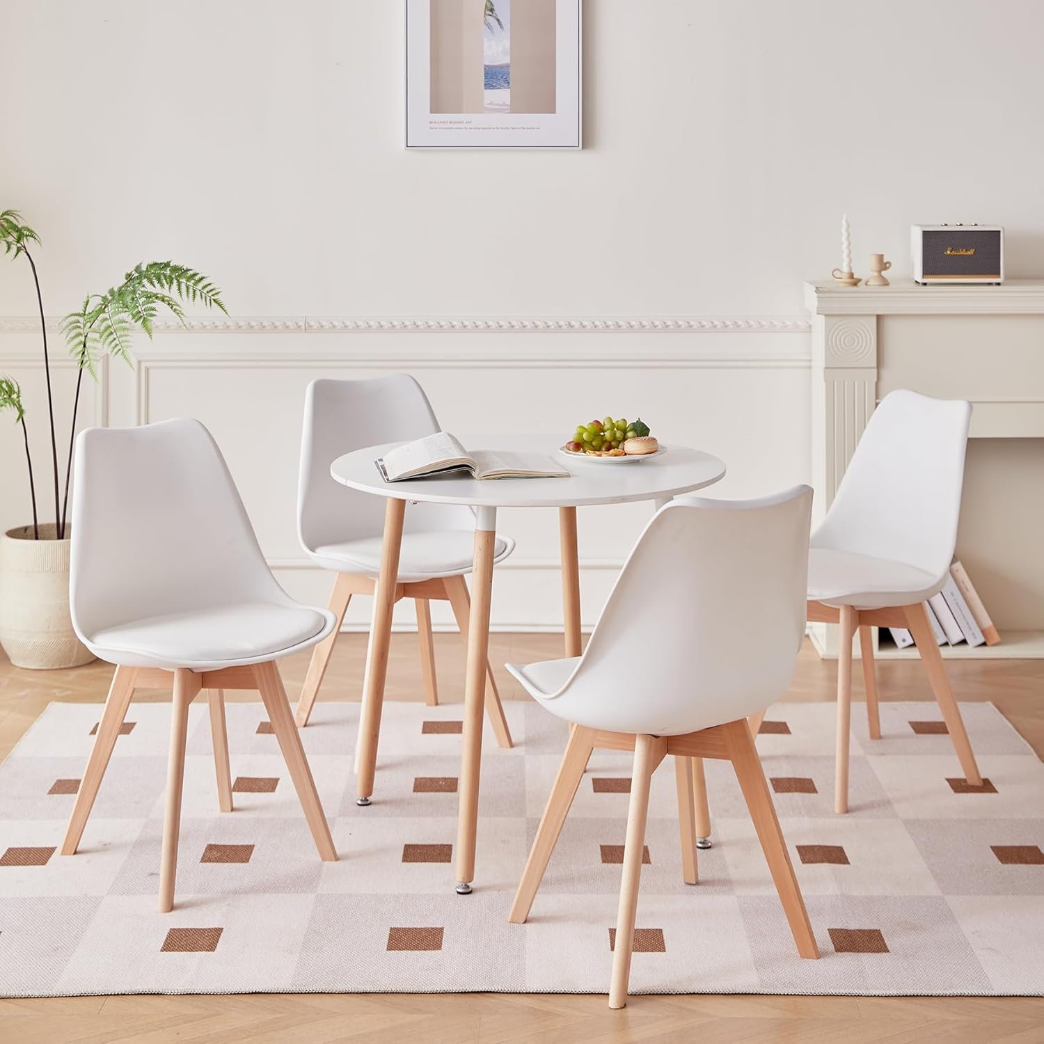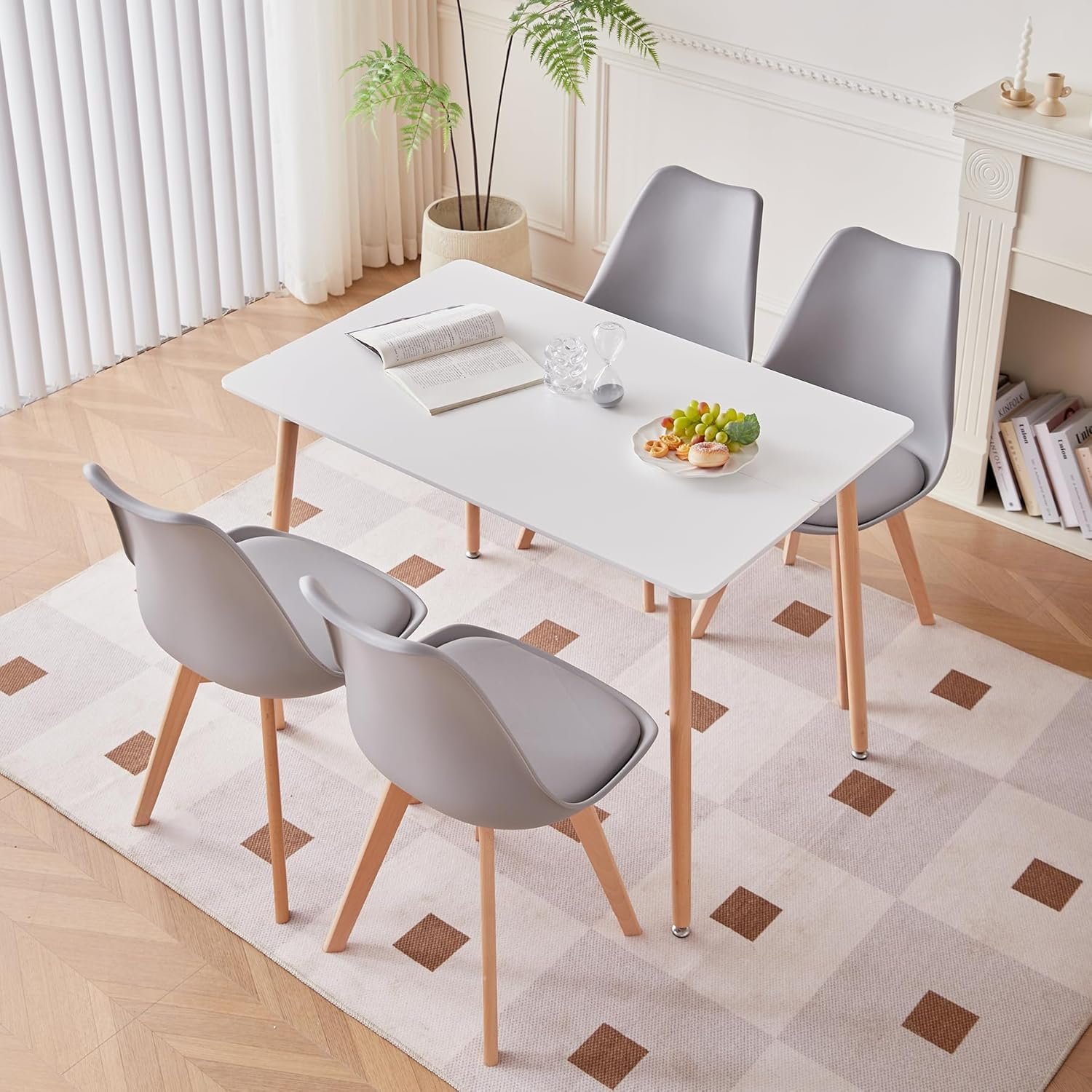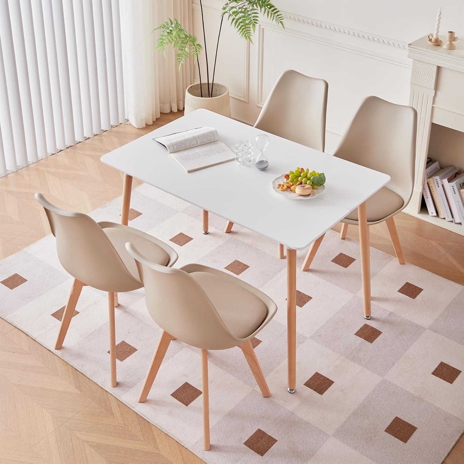 La table à manger est fabriquée en MDF et pieds en bois de hêtre, qui est durable et facile à nettoyer
