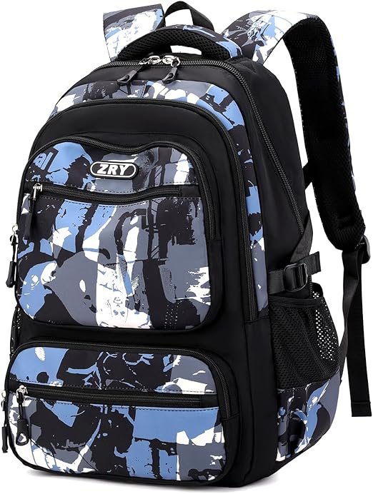 Sac à Dos pour Garçons, Cartable Primaire et Collège 40L, Sac d'École en Nylon Imperméable Léger et Spacieux pour Loisirs Voyage Scolaire, Idéal pour 10 à 22 Ans