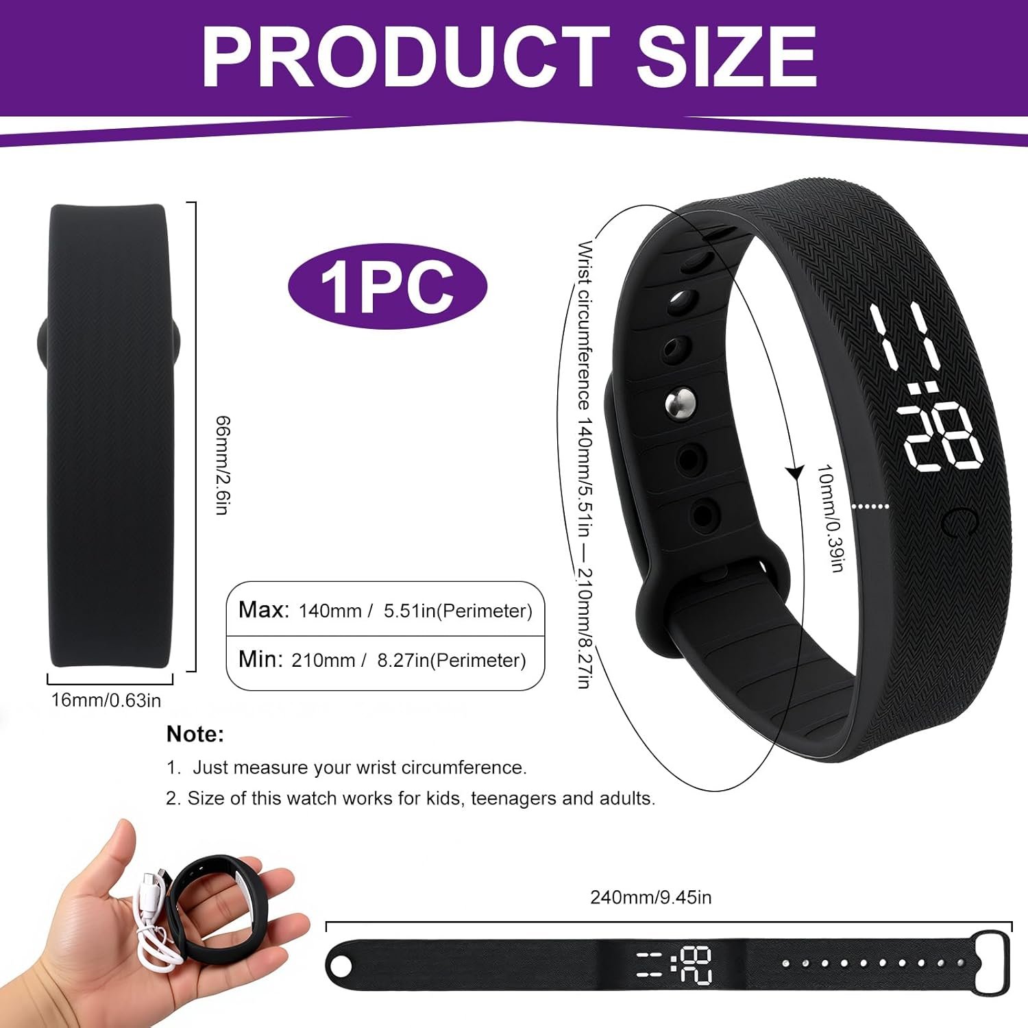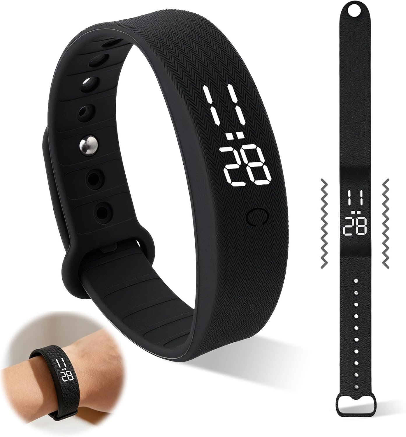 Bracelet Réveil Vibrant Intelligent avec Moniteur de Sommeil et Podomètre, Alarmes Silencieuses, Étanche, Autonomie 25 Jours, Affichage LED, Design Confortable pour Sport et Quotidien Noir