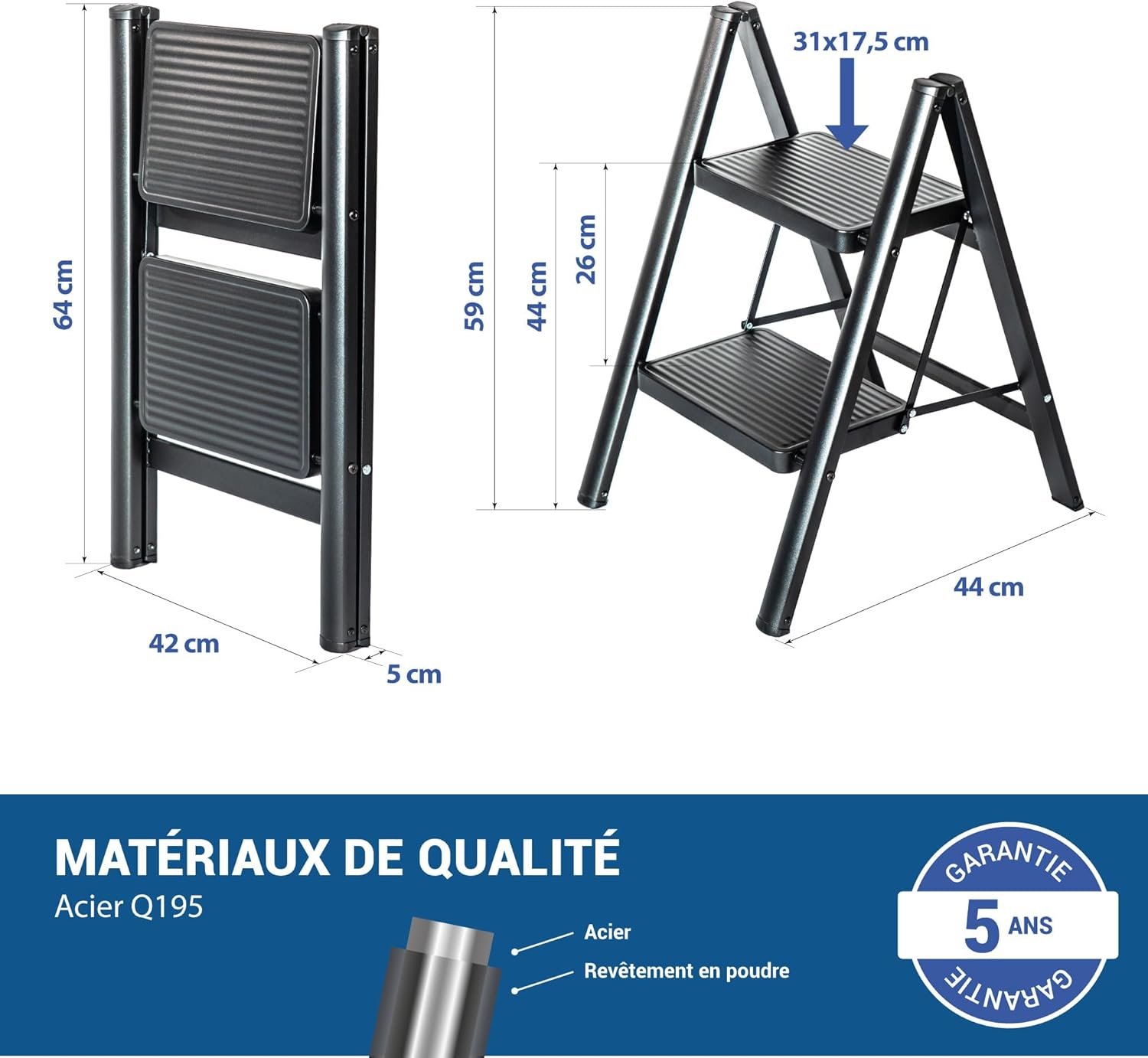 Escabeau 2 marches FOLDPACT2, Marche Pied Pliable
