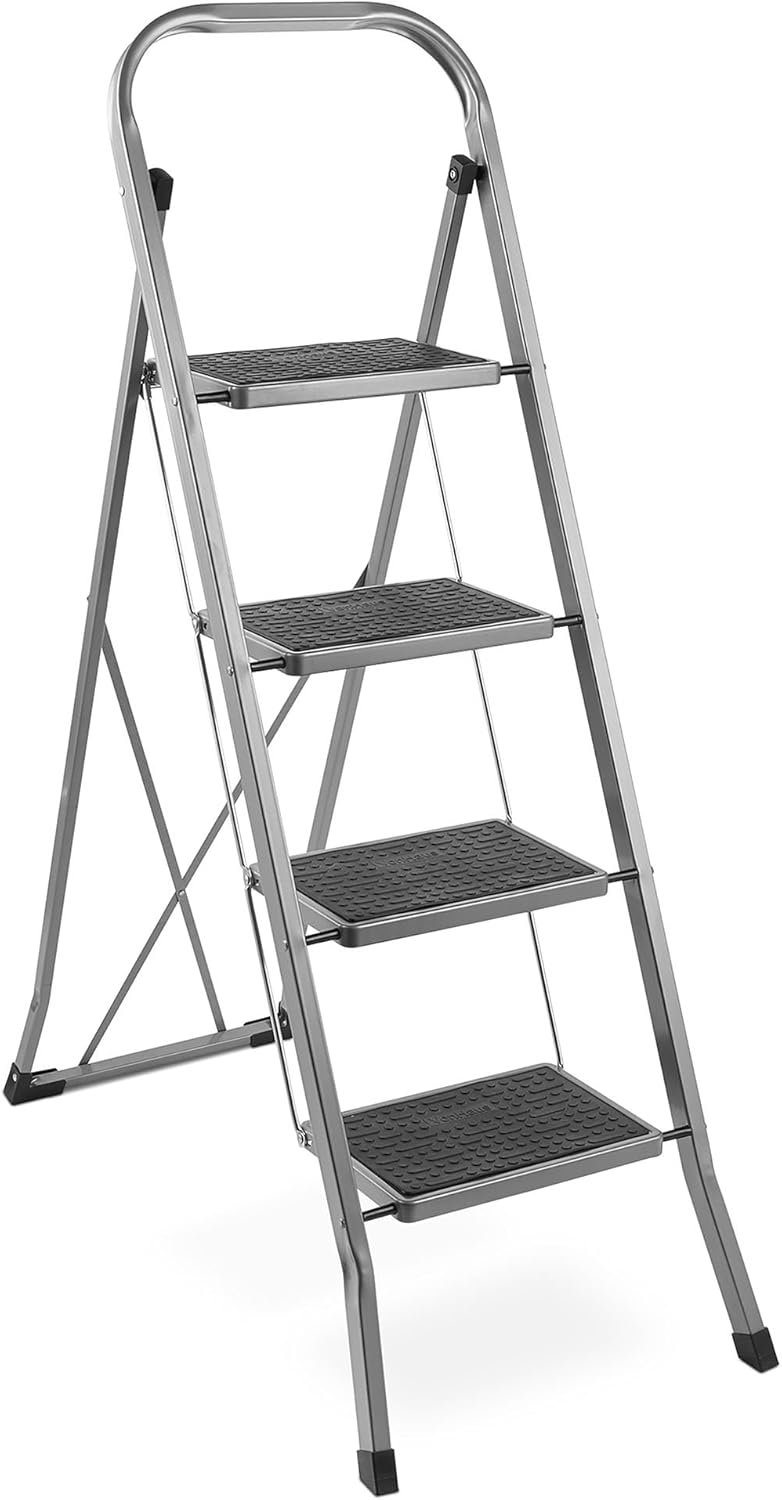 Escabeau 2 Marches Antidérapant – Escabeau Pliable Facile à Ranger – Capacité Maximale de 150 kg