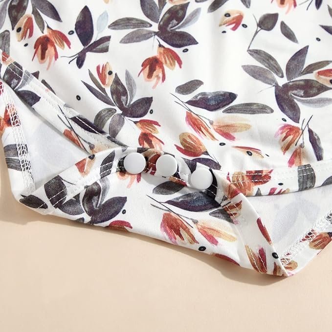 Vetement Bebe Tenue de Vêtements pour Bébé Nouveau-né Manche Courte Body Barboteuse + Jupe + Bandeau Ensemble 3 pièces pour Bebe Fille 0-24 Mois (Florales/Imprimé Léopard)