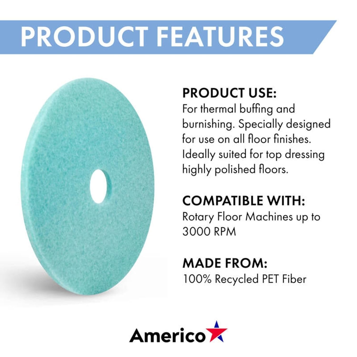 Americo Luster Lite Ultra High Speed Burnishing Floor Pad, Polish to High Gloss Finish, 20" Diameter, 5 Pads/Case, Made in USA