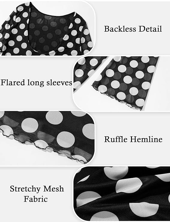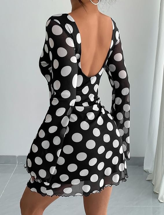 Robe courte sexy dos nu Panegy pour femmes, manches longues évasées, en maille, style Y2K, moulante, idéale pour les soirées, à pois, streetwear de cocktail