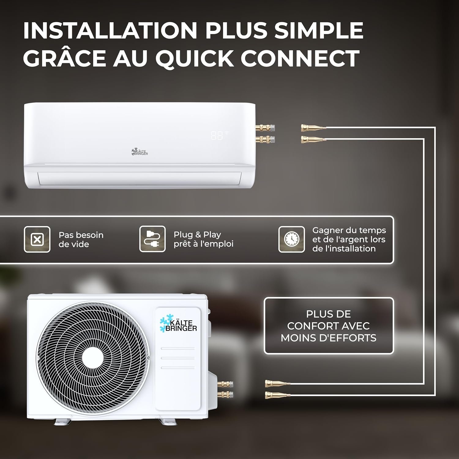 Split Climatiseur Quick Connect 18000 BTU - 5,3 kW - Avec fonction de chauffage - très silencieux & économe en énergie, avec support mural