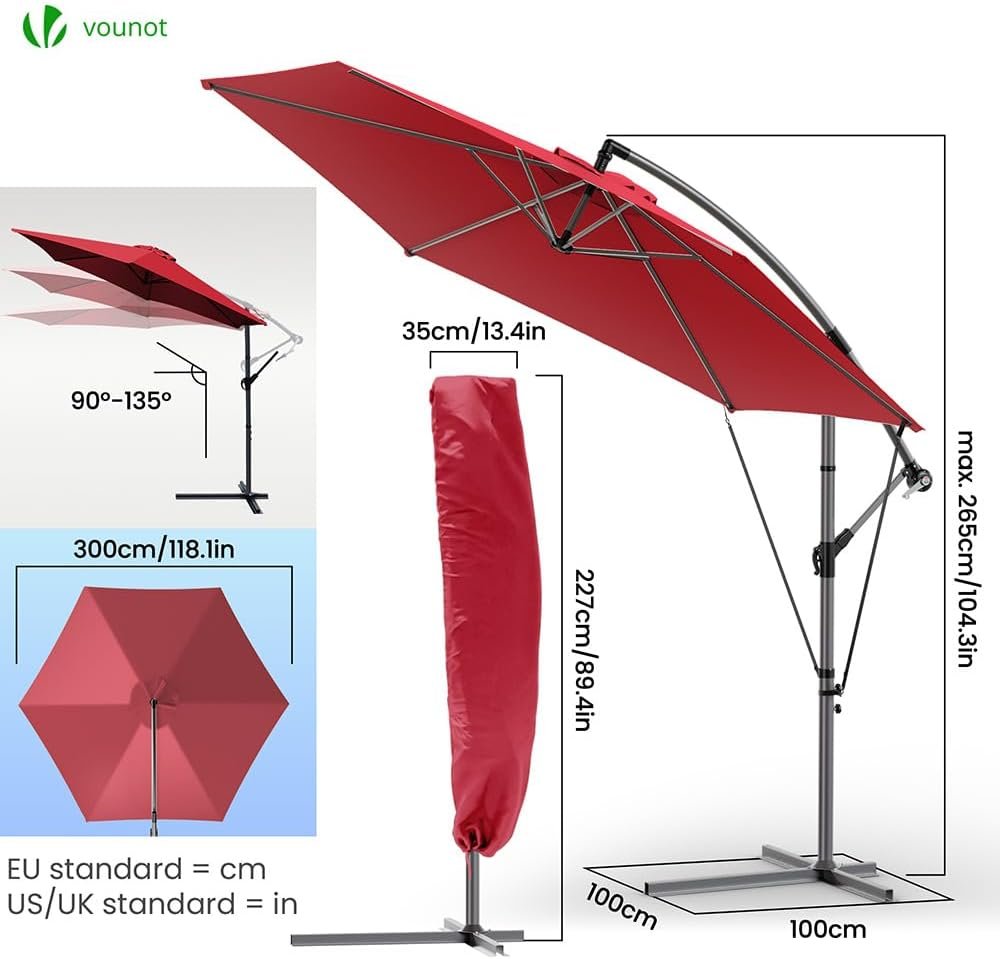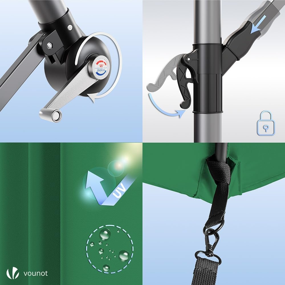 Livré avec une housse de protection et une sangle de fixation, ce parasol déporté allie praticité et durabilité pour vos moments de détente en extérieur.