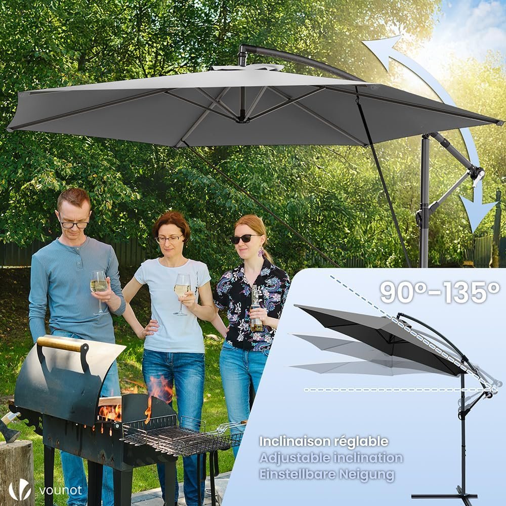 Parasol Déporté Hexagonale 3M avec Manivelle Anti-Retour et Sangle de Fixation Parasol Inclinable Toile 180gr/m2 Anti UV H235cm 6 Baleines en Acier Inclus Housse de Protection