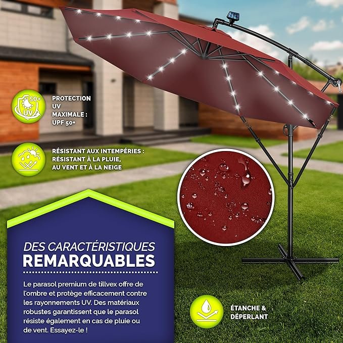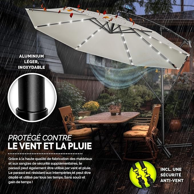 Matériau : mât de parasol en aluminium, tissu en polyester 180 g/m².